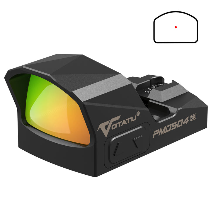 - 3MOA Micro Red Dot: The VOTATU PMD504-SR is a open reflex sight for RMR footprint cut pistols and picatinny rail mount . Featuring a Red 3 MOA aiming dot with a 24mm window for quick acquisition.