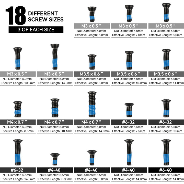 Secure Your Red Dot Instantly – Attach optics to slides, adapter plates, or custom mounts effortlessly with 18 precision screw sets (M3, M3.5, M4, 6-32, 4-40, 6-40). Perfectly fits Glock,...